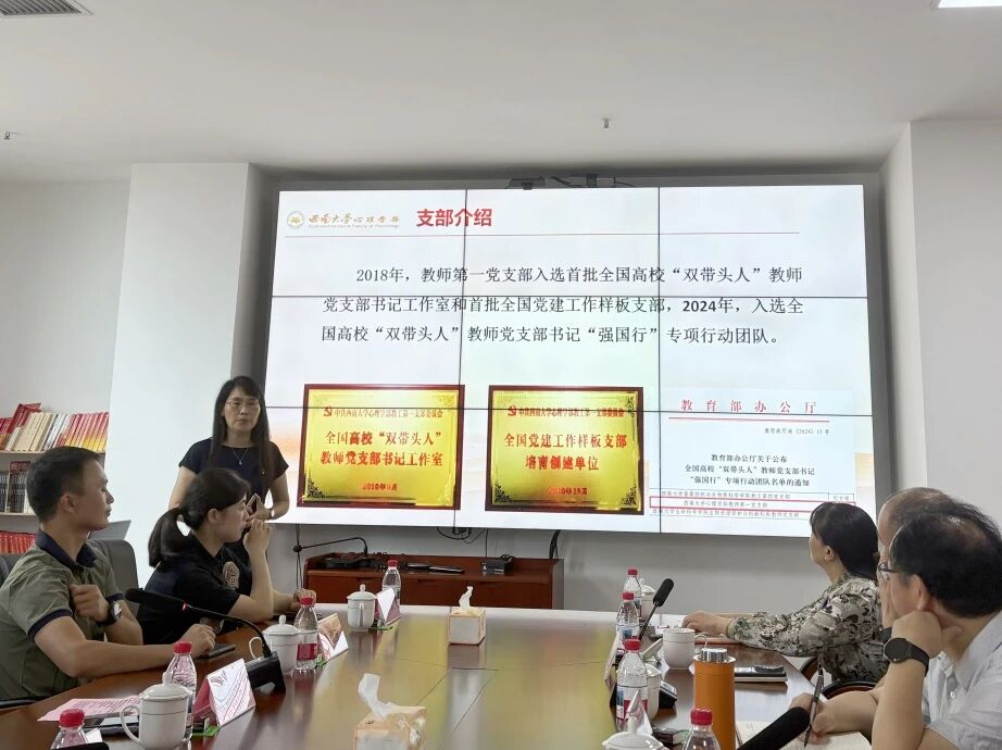 当天,与会领导及党员代表进行了首次党建工作联合研讨。大足区精神卫生中心党委副书记谢浩、心理学部教师第一党支部书记赵永萍分享了各自党组织的建设经验。与会人员围绕党建引领下的人才培养、科研合作、心理健康科普等议题展开热烈讨论,并就合作共建学生实习实践基地、精神障碍预防干预研究平台、社区心理健康服务站点等初步达成共识。
